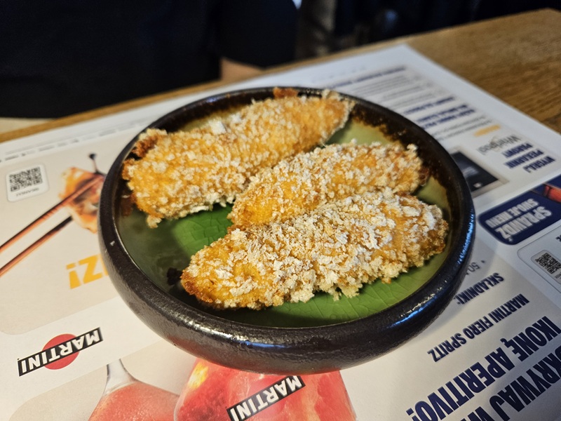 Menu B było nieco lżejsze, ale równie przyjemne. Paluszki z mozzarelli miały odpowiednią konsystencję i równomiernie zarumienioną panierkę. Całość świetnie dopełniał autorski sos pomidorowy.