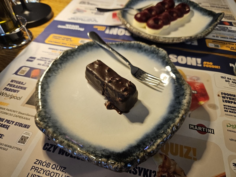 Deser, intensywny, mus czekoladowy z dodatkiem karmelu i orzeszków - niebo w gębie! Jedyną wadą był rozmiar porcji - nie mielibyśmy nic przeciwko temu, aby była odrobinę większa.